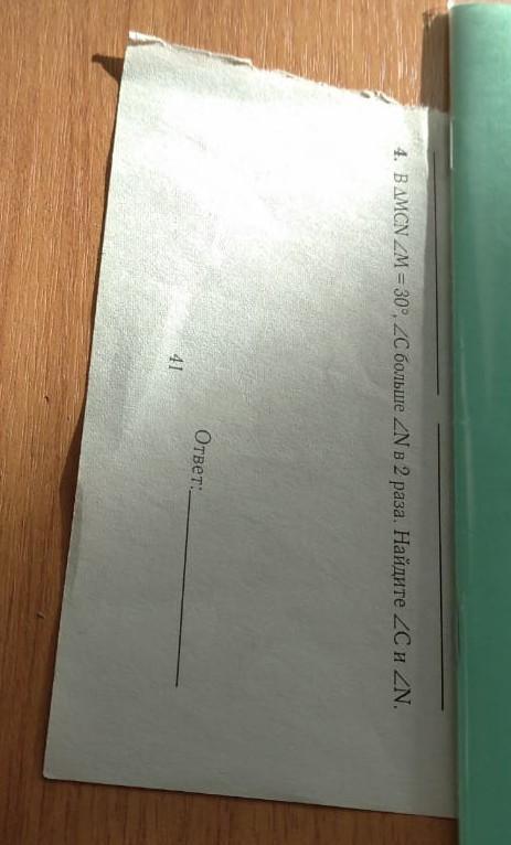 Сумма углов треугольника 180 угол N =x С=2х 30+х+2х=180 3х=150 х=50 Ответ угол N=50 угол С=100