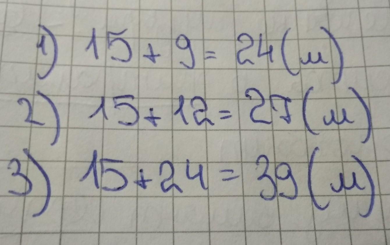 просто прибавляешь к высоте первого дома (15) данные числа (9,12,24), тем самым получаешь высоты второго дома
