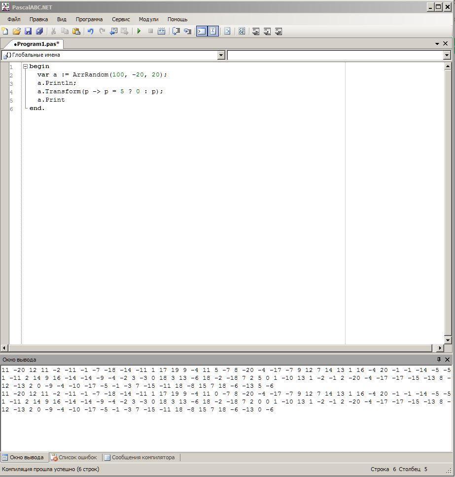 Даю 100 баллов. Одномерный массив из 100 элементов заполнен случайным образом. Замените элементы равные 5 на 0.