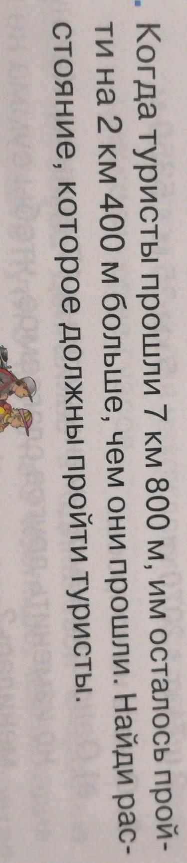 1) 7км 800 м + 2км 400= 10 км 200м - расстояние, которое ещё нужно пройти