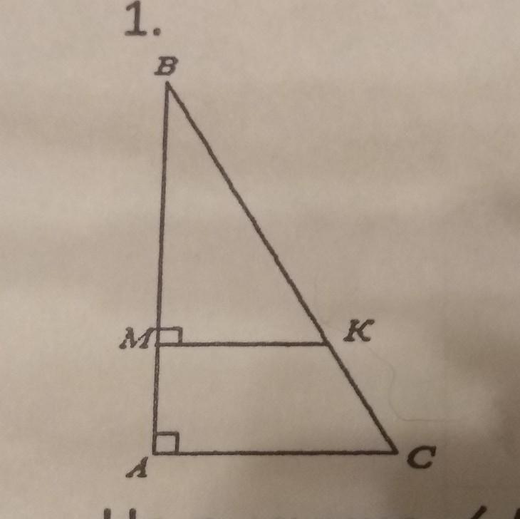 Значит треугольники ABC и MBK подобны по первому признаку подобия треугольников.