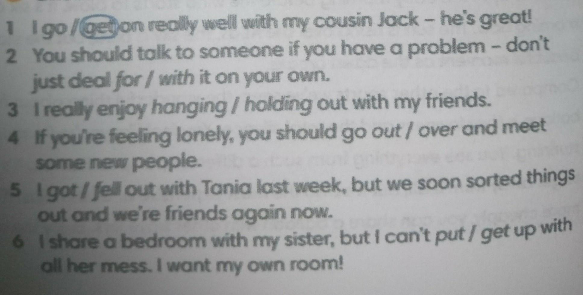 5. I got out fell out with Tania last week, but we soon sorted things out and we're friends again now