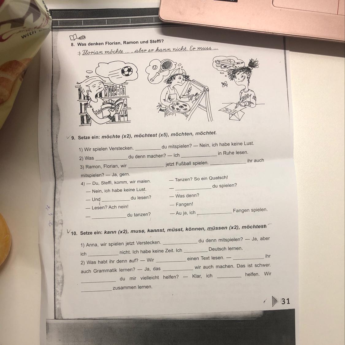 1) Möchtest du denn mitspielen? Aber ich kann nicht. Ich muss Deutsch lernen.
