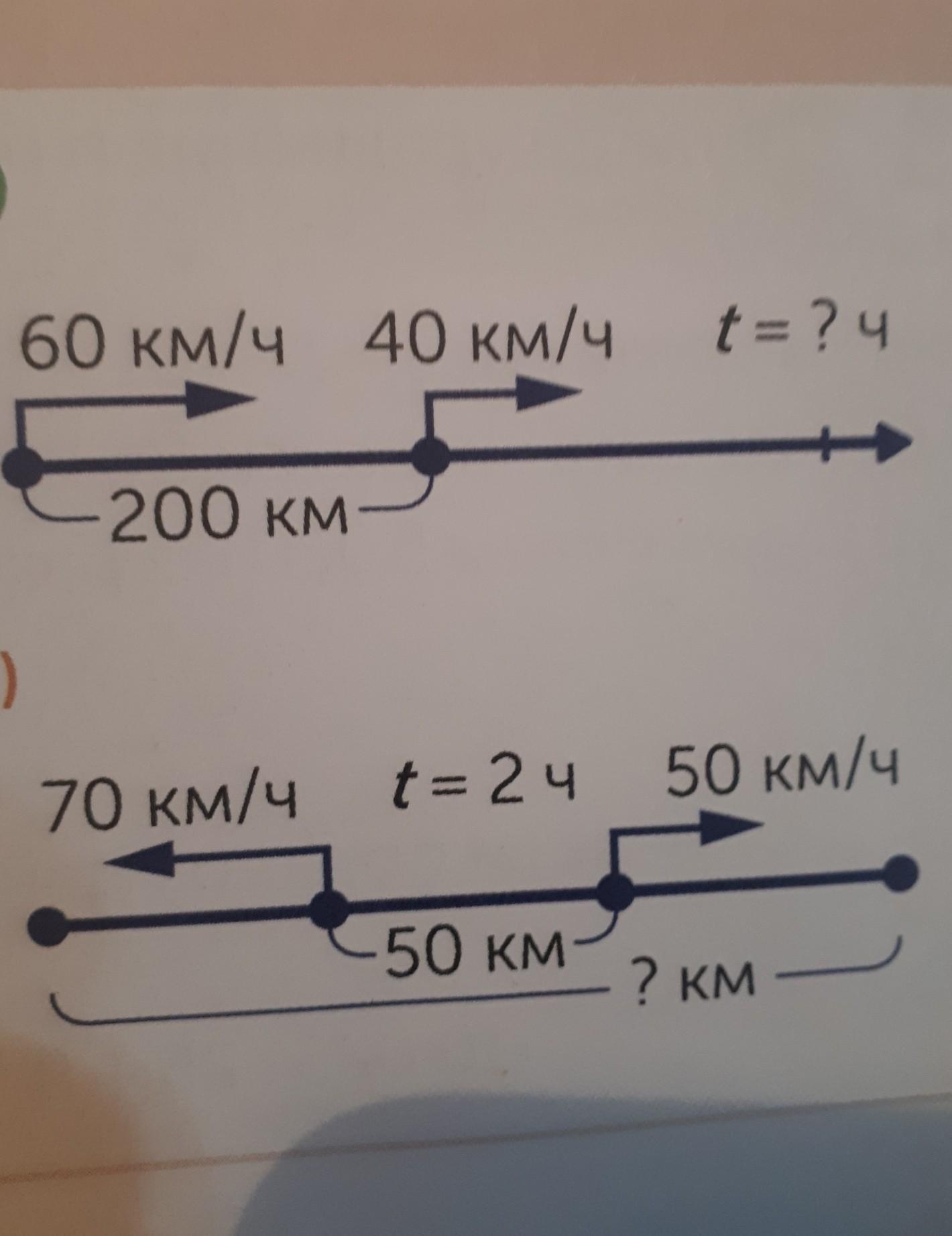 2. Из пунктов А и В, расстояние между которыми 50 км, одновременно в противоположных направлениях выехали два автомобиля, один со скоростью 70 км/ч, другой со скоростью 50 км/ч. Какое расстояние будет между ними через 2 часа?