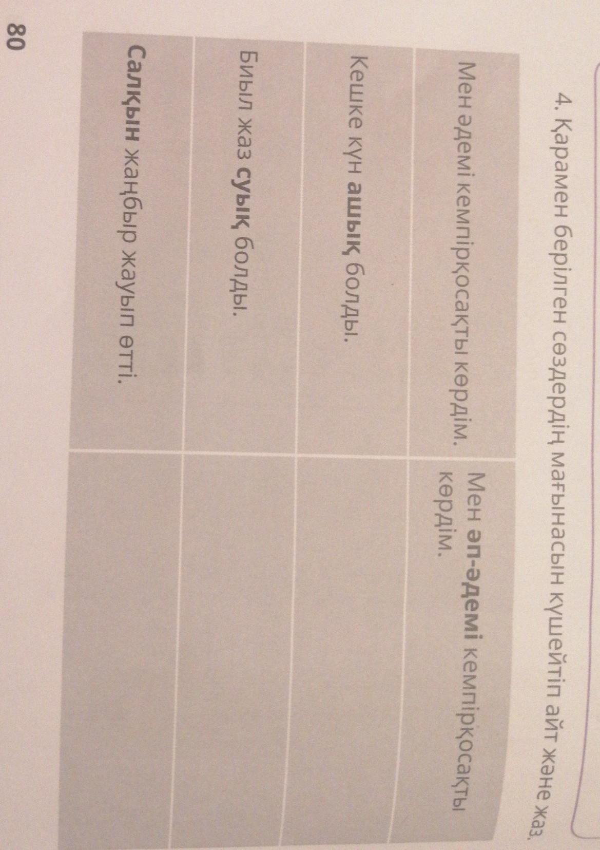 Кешке кун ап-ашык болды.Биыл жаз суп-суык болды.Сап-салкын жанбыр жауып отти.(Некоторые буквы на казахском))