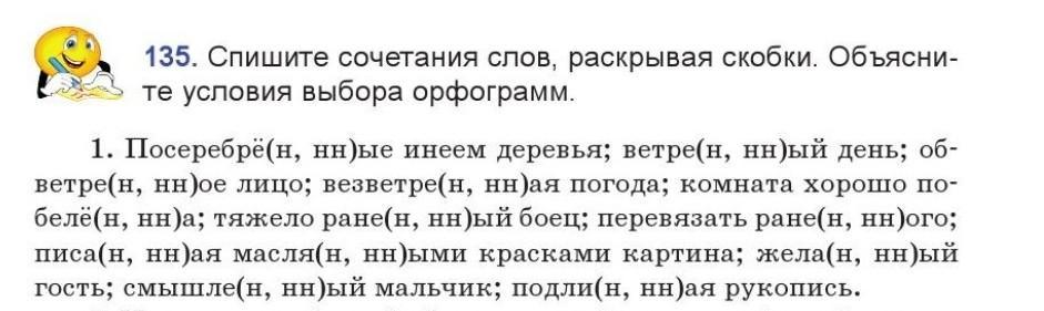 посеребрённые, ветреный, обветренное, безветренная, побелена, раненный, раненого, писаная, масляными, желанный, смышленый, подлинная