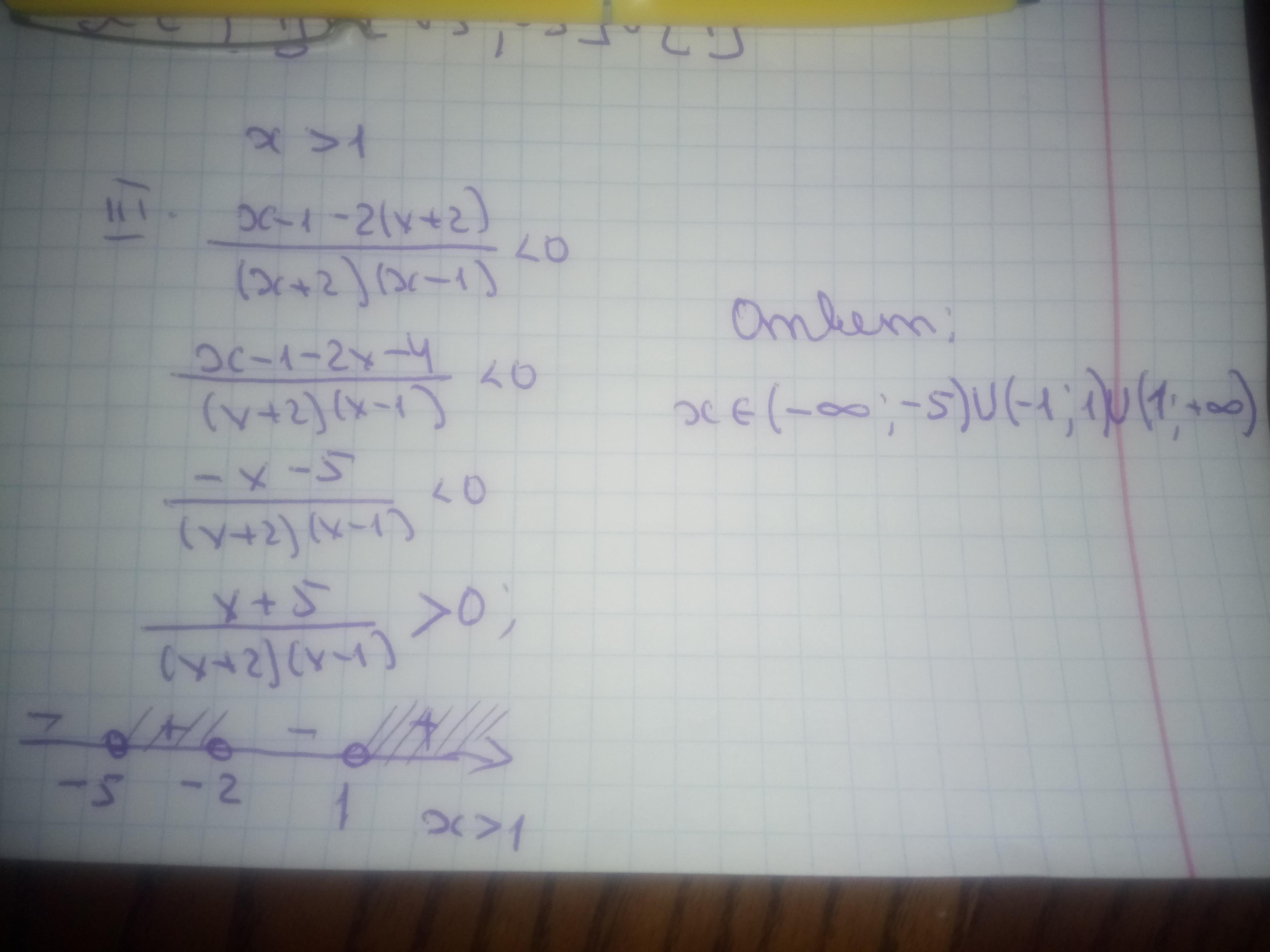 Решите пожалуйста, выходит ответ у меня ( - бесконечности, -5 ) u ( -2, 1) и ( -2, -1) u ( 1, + бесконечности ), но всеравно не правильно.