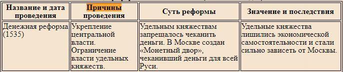 C 1535 по 1538 г. в Русском государстве была проведена первая реформа денежного обращения. Реформа проводилась от имени малолетнего великого князя Ивана Васильевича в период регентства его матери Елены Глинской, под именем которой она и получила известность. Реформа Елены Глинской была одним из самых значительных событий в экономическом и политическом развитии средневекового Русского государства. В результате реформы была создана устойчивая система денежного обращения. Реформа стала завершающим этапом политического объединения русских земель и способствовала их более интенсивному развитию.