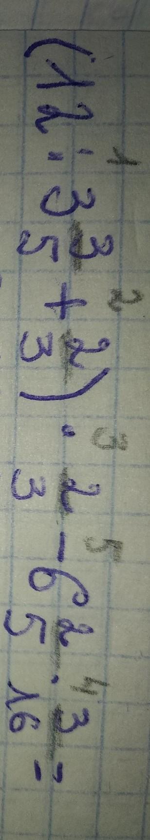 1) 12÷3 3/5=12/1÷18/5=12/1*5/18=12*5/1*18=60/18сокращаем на 6=10/3=3 1/3