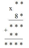 При умножении двузначного числа ** на 8 получаем двузначное число. А значит это число ** - 10; 11 либо 12 (ибо 13*8=104)