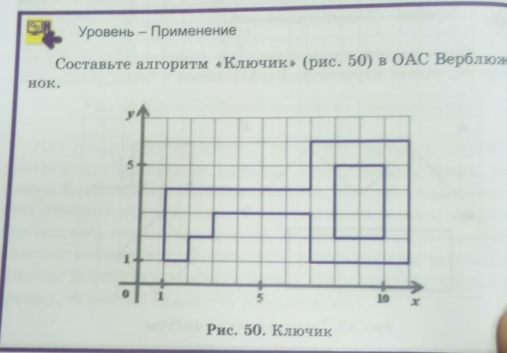 составьте алгоритм "Ключик"(рис.50) в ОАС Верблюжонок.Помогите пожалуйста.
