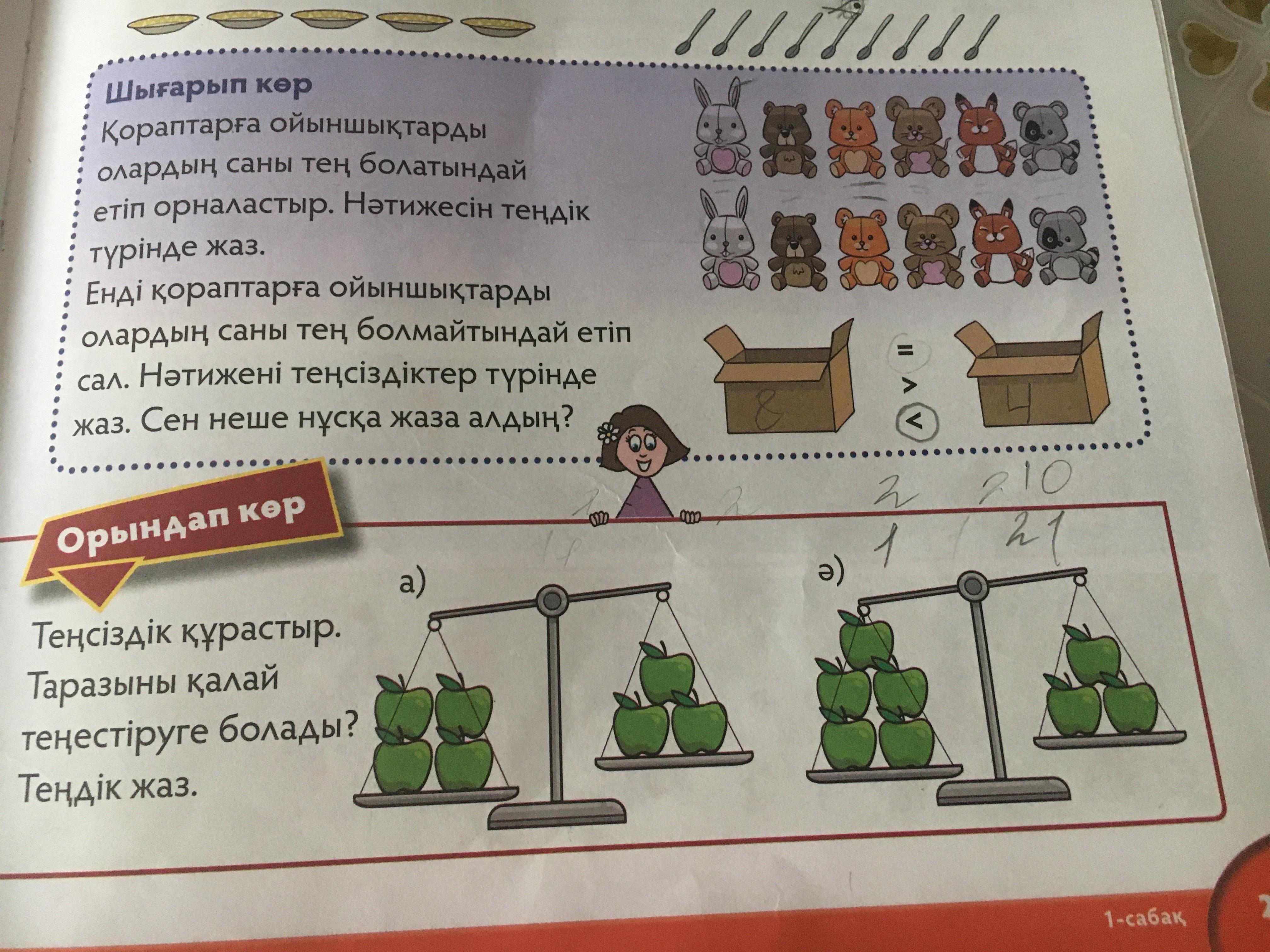 Ә)сол жағындағы алманы он жакка койганда алма саны теңеседі