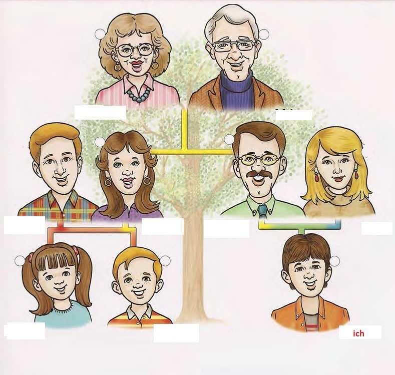 Ergänzen Sie das Bild. Необходимо подписать на картинке как называются родственники по-немецки.