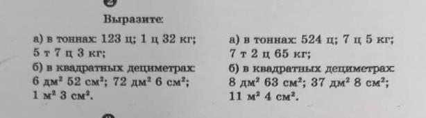 а) 524ц = 52,4т; 7ц 5кг = 0,705т; 7т 2ц 65кг =, 7,265т;