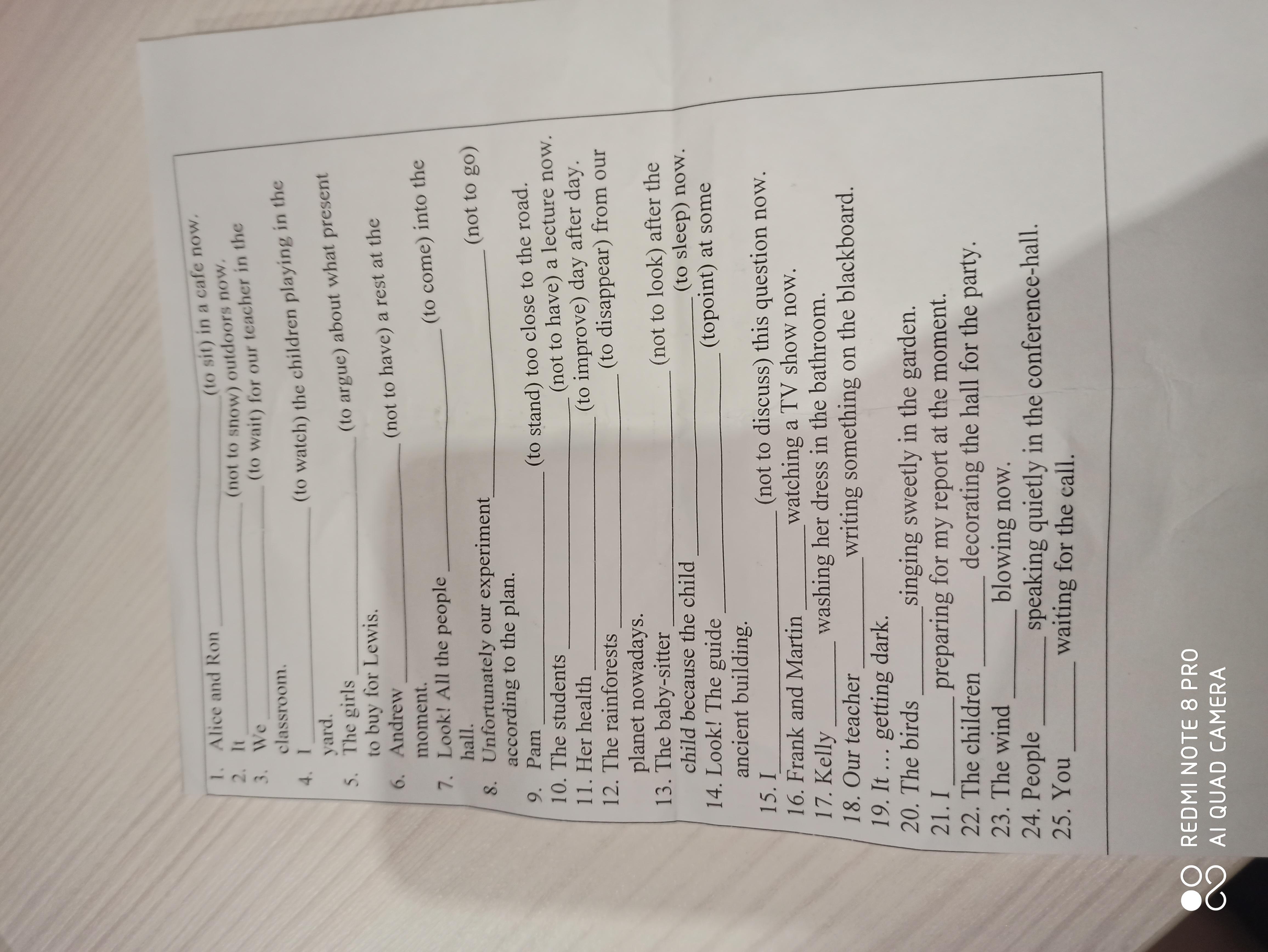 Помогите пожалуйста. Поставить в Present Continuous. Заранее спасибо!) Даю 50 баллов.
