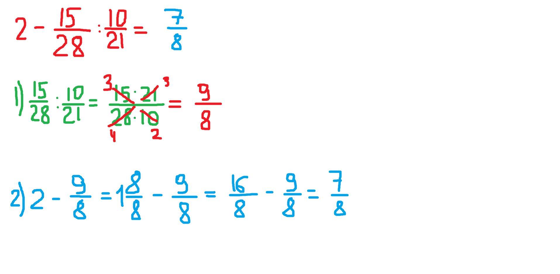 1) 15/28 : 10/21 = 15/28 * 21/10 = 9/8