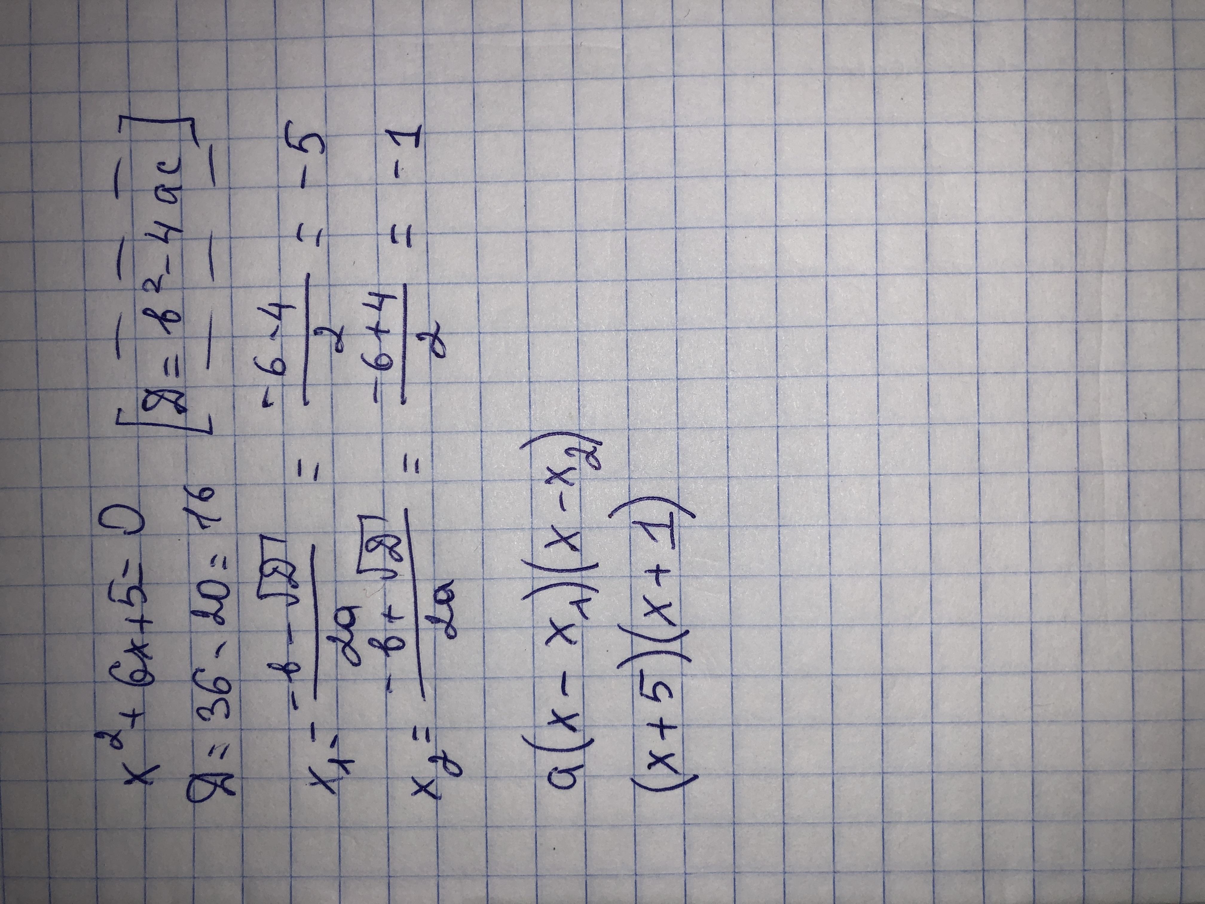 Объяснение:Находим дискриминант. Дискриминант равен 16. Находим корни по формуле (на фото). Разлаживаем (формула имеется на фото)
