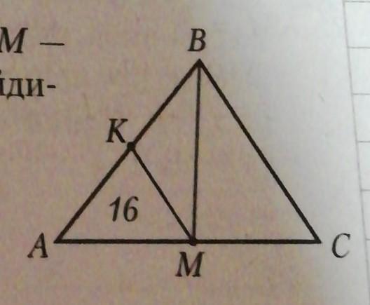 Помогите пожалуйста, В треугольнике ABC (см.рис.) BM - медиана, МК || BC, S(AKM) =16. Найдите S(ABC).