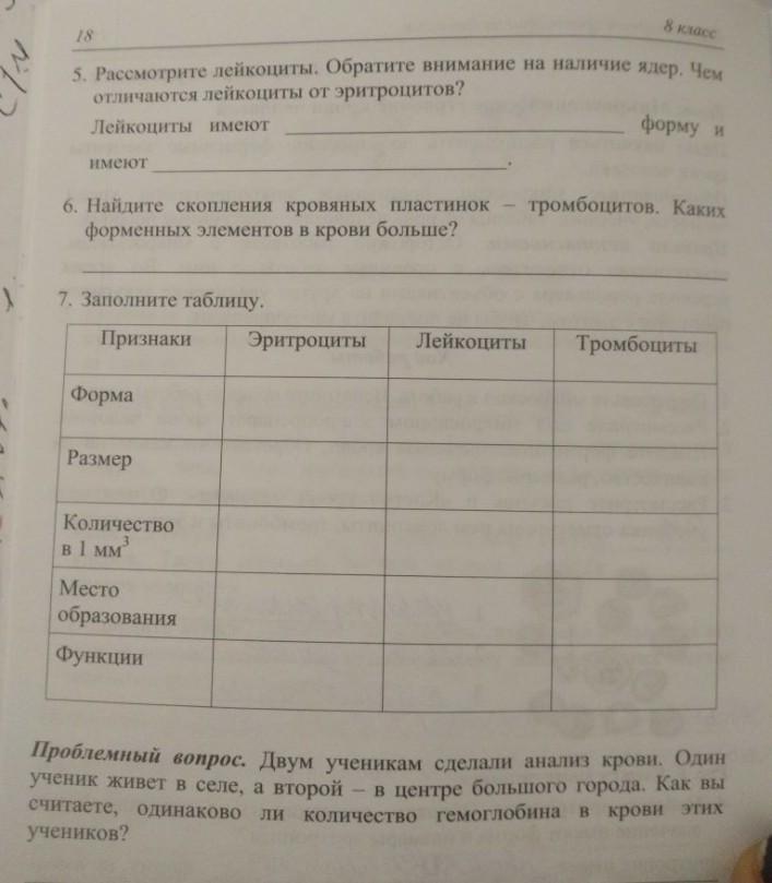 ЭРИТРОЦИТЫ:1) У низших позвоночных эритроциты крупные (например, у хвостатого земноводного амфиумы — 70 мкм в диаметре), эритроциты высших позвоночных мельче (например, у козы — 4 мкм в диаметре). 2) У человека диаметр эритроцита составляет 6,2 — 8,2 мкм, толщина — 2 мкм, объём — 76 — 110 мкм³.3)в 1ми крови содержится 25 миллионов эритроцитов4)образование:в костном мозге,5)поглощают кислород в лёгких,транспортииуют и отдаёт кислород тканям и лёгким