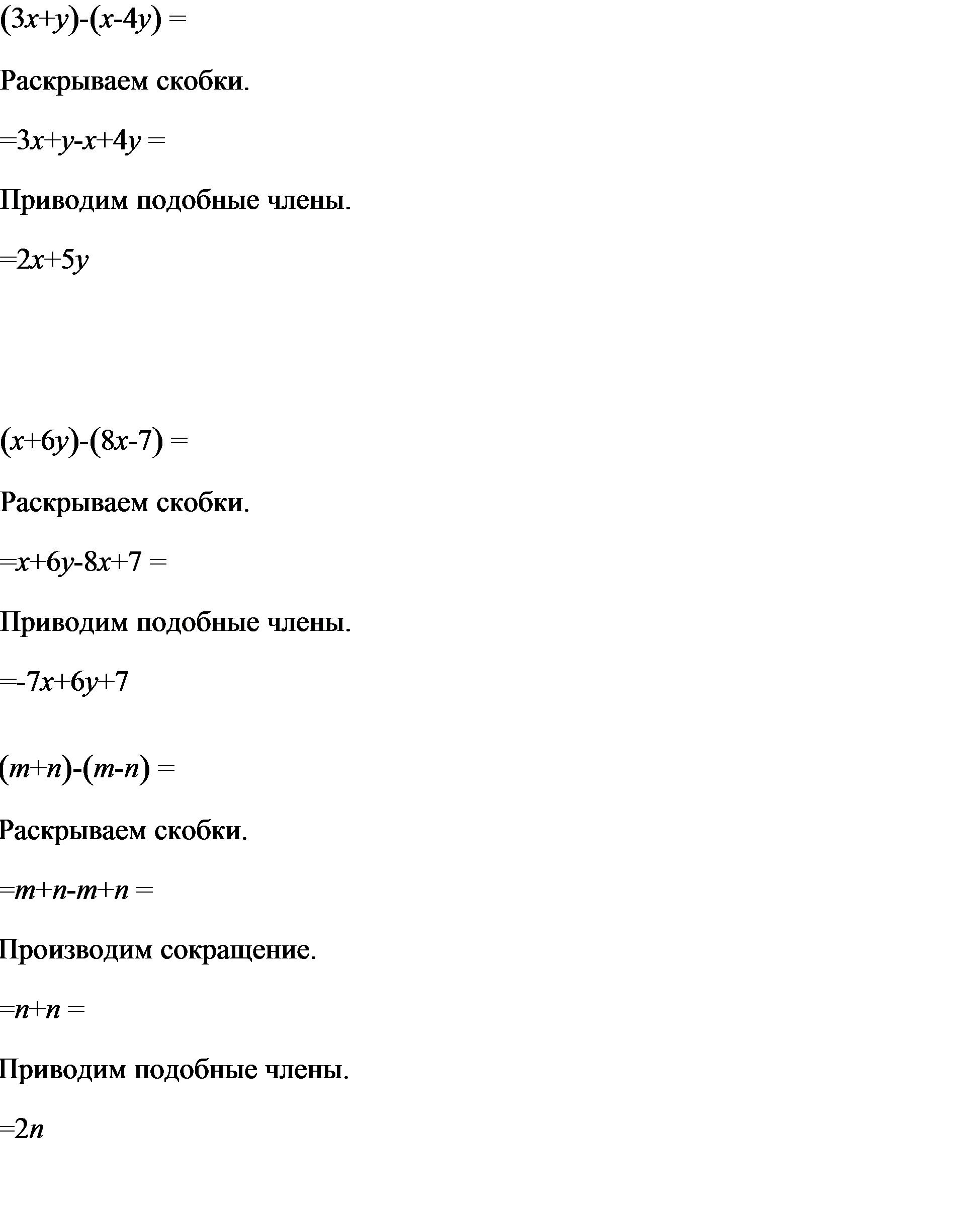 2) (х+6у)-(8х-7)=x+6y-8x+7=6y+(x-8x)+7=6y-7x+7