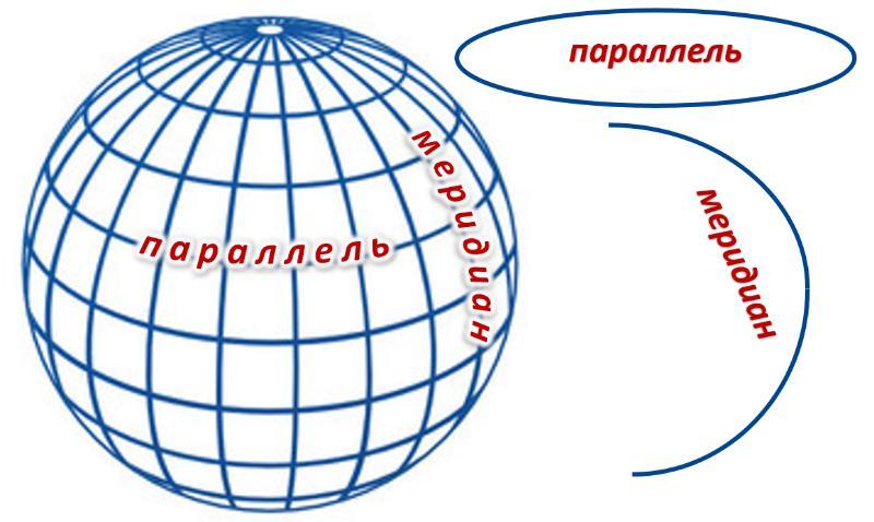 Рисунок в приложении показывает, что такое параллели и меридианы.