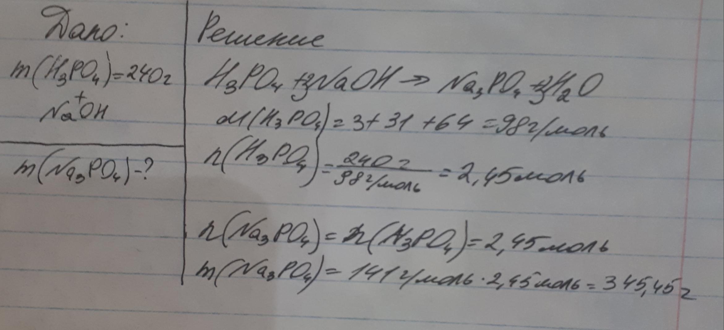 При взаимодействии 240 г фосфорной кислоты с гидроксидом натрия образовалось соль. найдите массу образовавшейся соли
