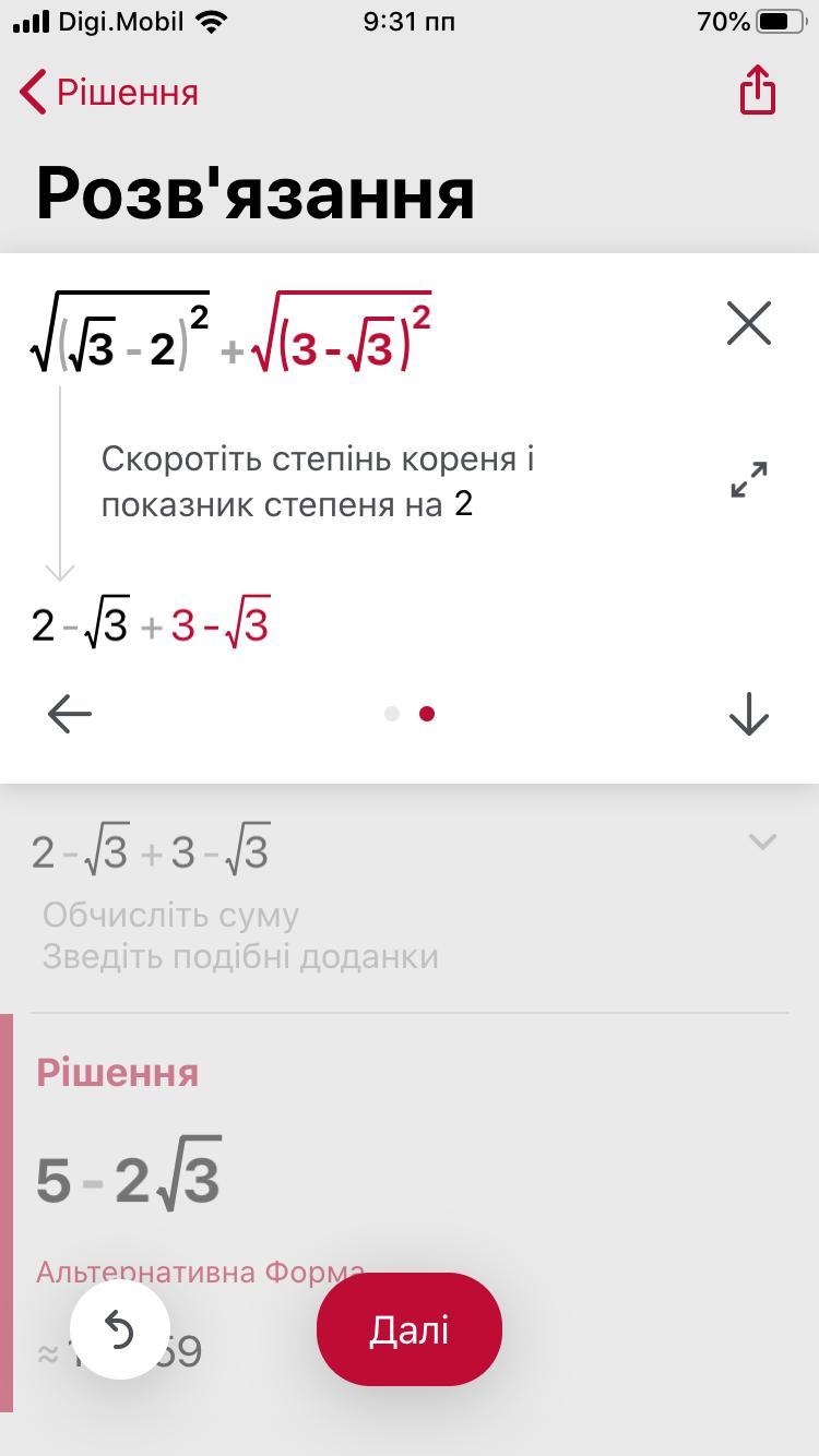2) корень из трёх - 2 + 3 - корень из трёх = -2+3 = 1