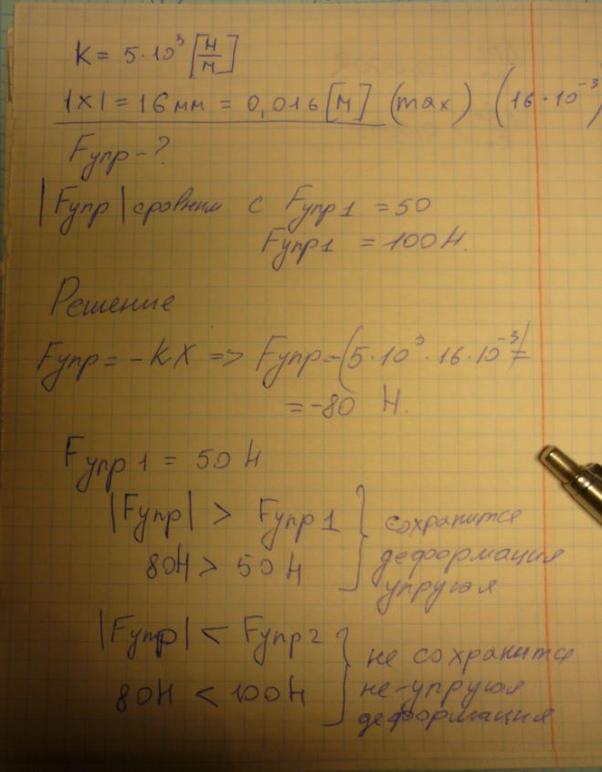 Жесткость пружины 5*10(в кубе)H/м. Предельная длина,на которую ее можно растянуть, 16 мм. Сохранится ли упругость пружины,если к ней можно приложить силу 50H, 100H?