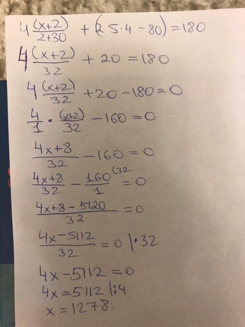 4*((х+2):2+30)+20=180