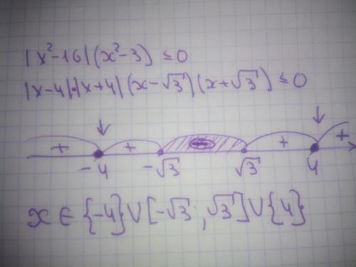 Смотрите, модуль числа (выражения) всегда значение неотрицательное. Поэтому если модуль ,как |х-4| или квадрат, как (х-4)^2, то именно в этой точке какой знак заходит справа, такой и выходит. Т. е на промежутках + и +, как в вашем примере неравенство принимает положительные значения. Видите стрелки? Это точки, которые принадлежат промежутку, они в фигурных скобках, так как неравенство нестрогое.