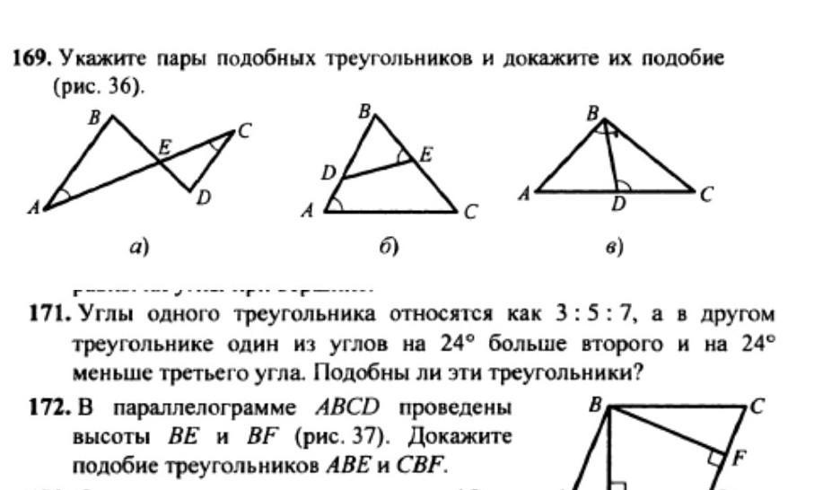б) ∠А=∠ВЕД; ∠С - общий; ΔАВС подобен ΔДВЕ