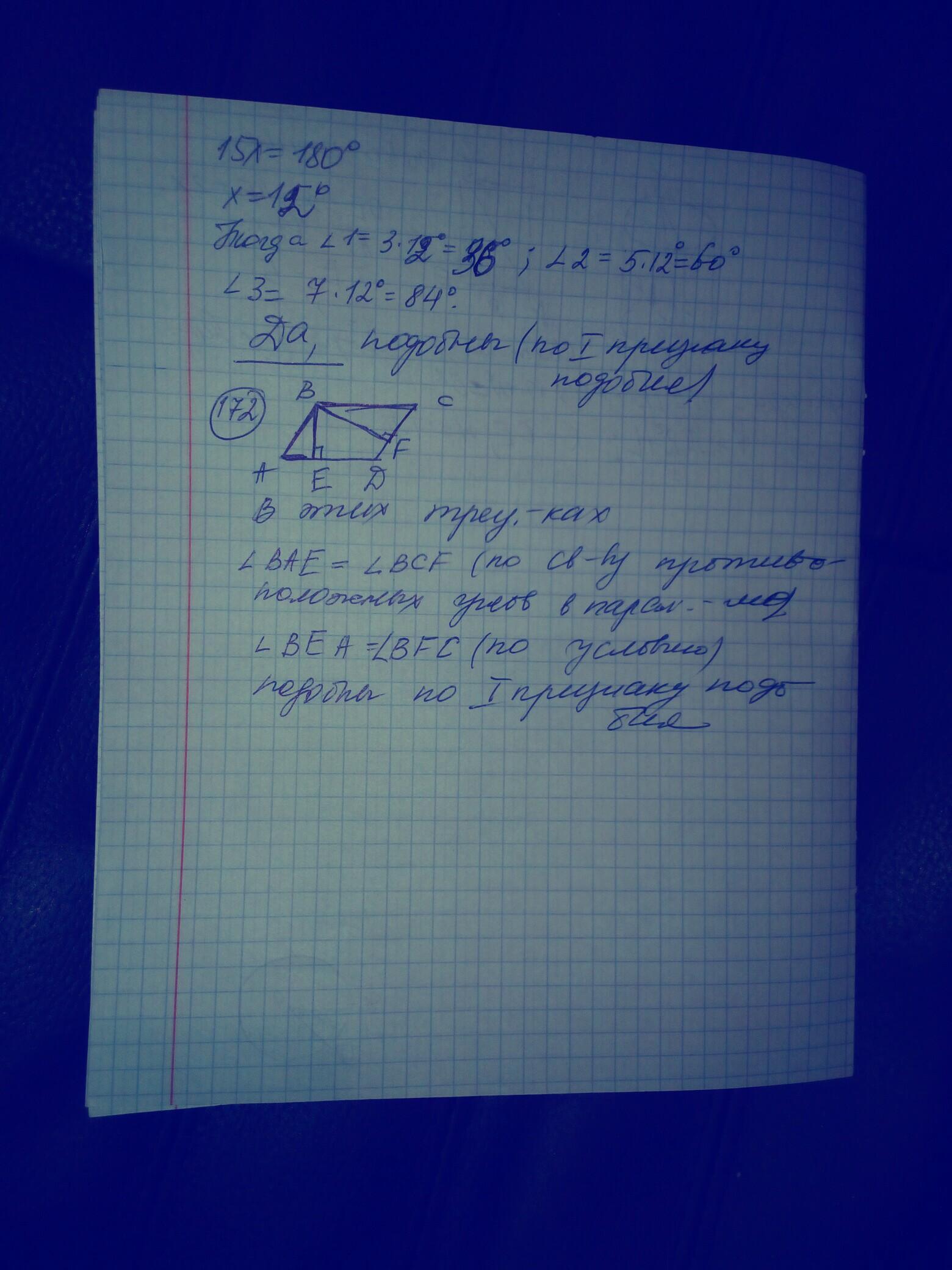 В 1 тр-ке углы 3х+5х+7х=180; 15х=180; х=12°
