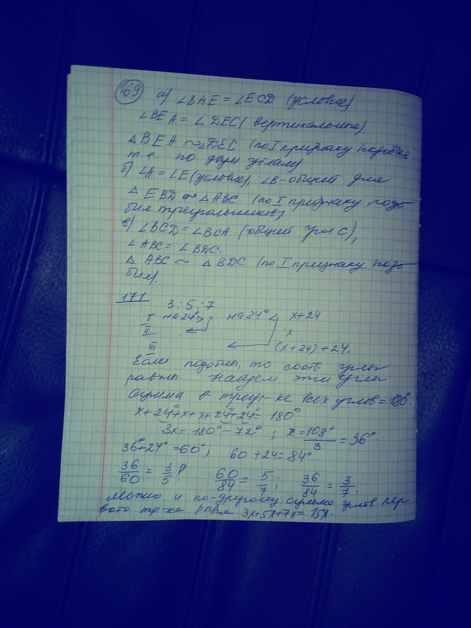 Средний ∠5х на 24° меньше 7х и на 24° больше 3х. Подобны.