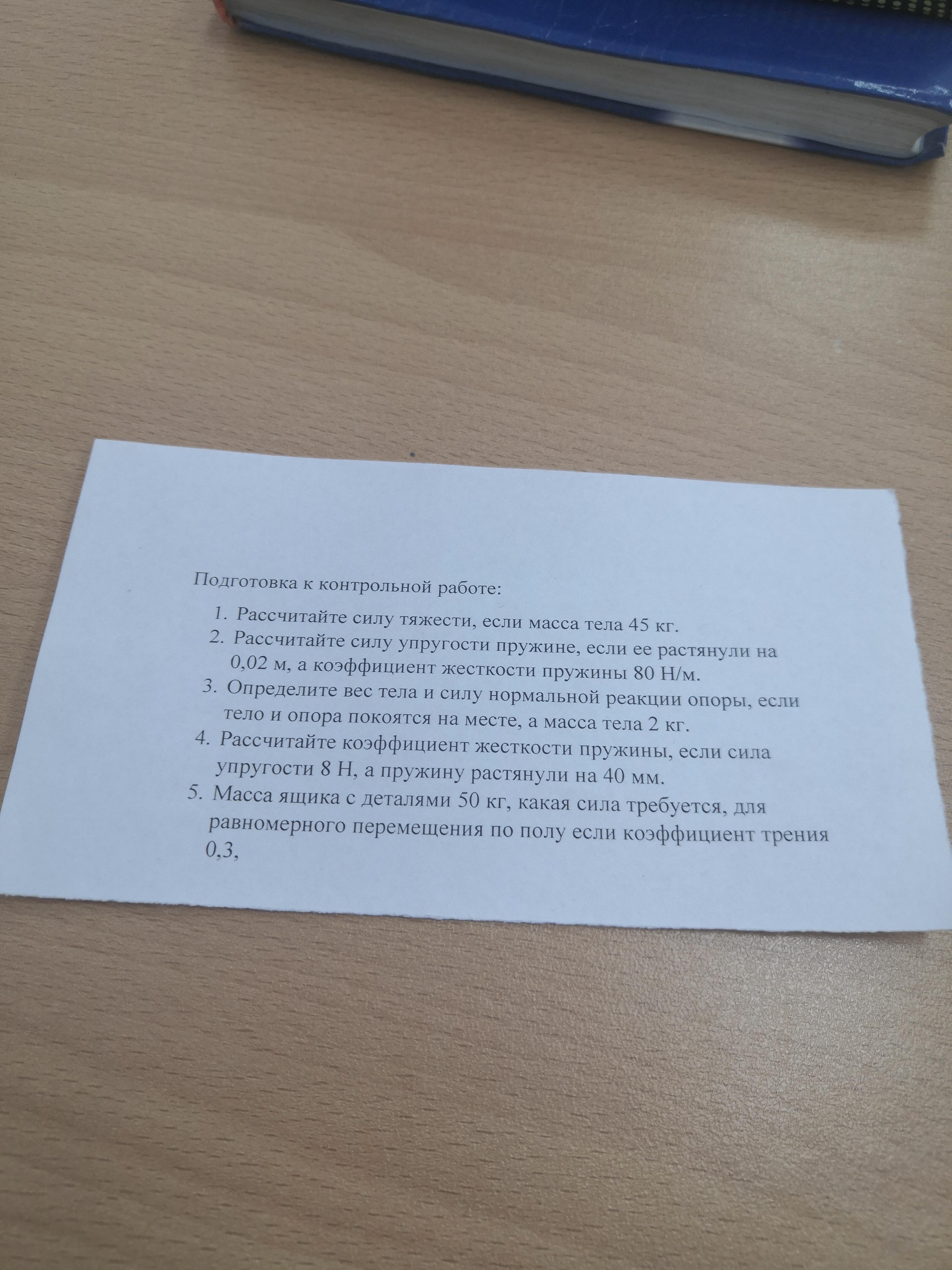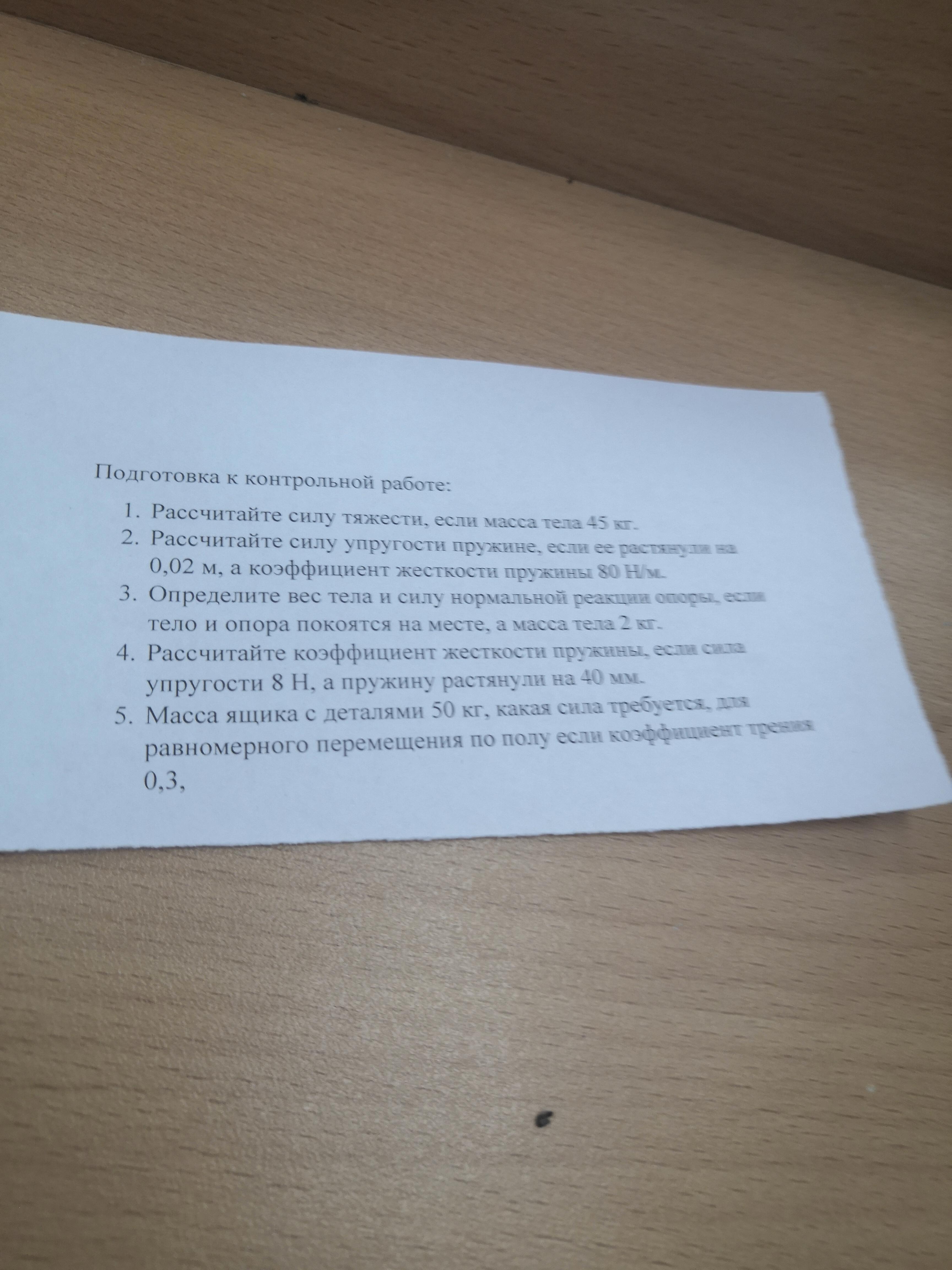 1. F=mg, g=9,8(это постоянная величина,можем округлить до 10) F=45*10=450 Н