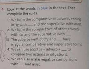 1) We form the comparative of adverbs ending in -ly with more and the superlative with most.