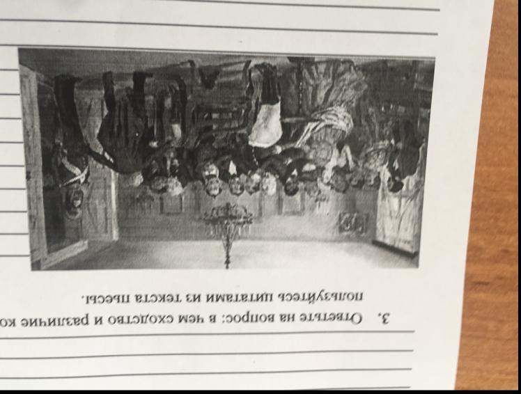 На этой картине изображена финальная сцена, иными словами, немая сцена. Жандарм заходит в комнату и сообщает, что приехал настоящий ревизор. Каждый герой застывает в определенной позе, так как весть неожиданная и все шокированы. Так как все думали, что проверка уже позади, а оказалось, что все худшее ждет их только впереди.