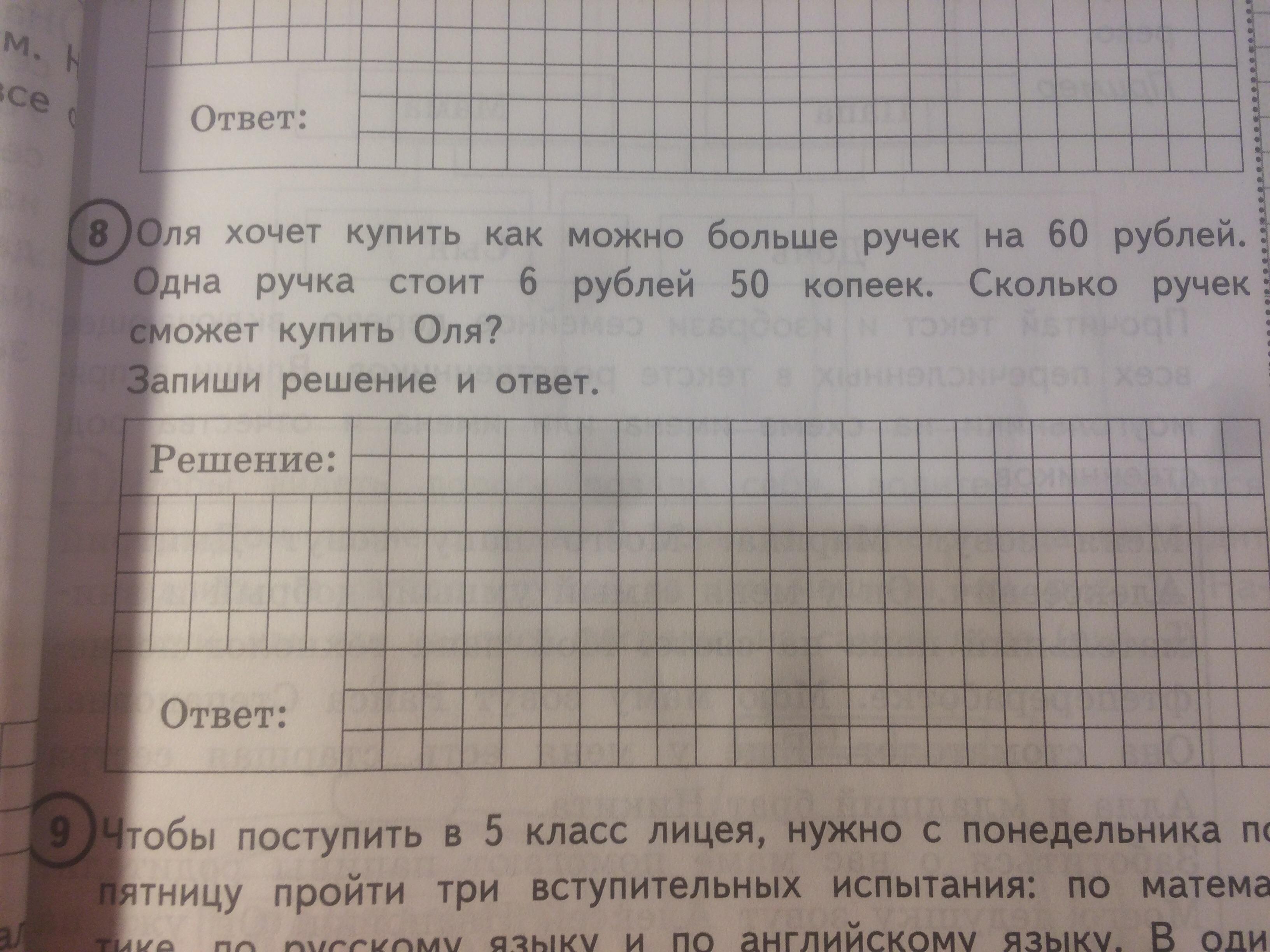 всего она может купить 9 ручек ( 58 руб 50 коп)