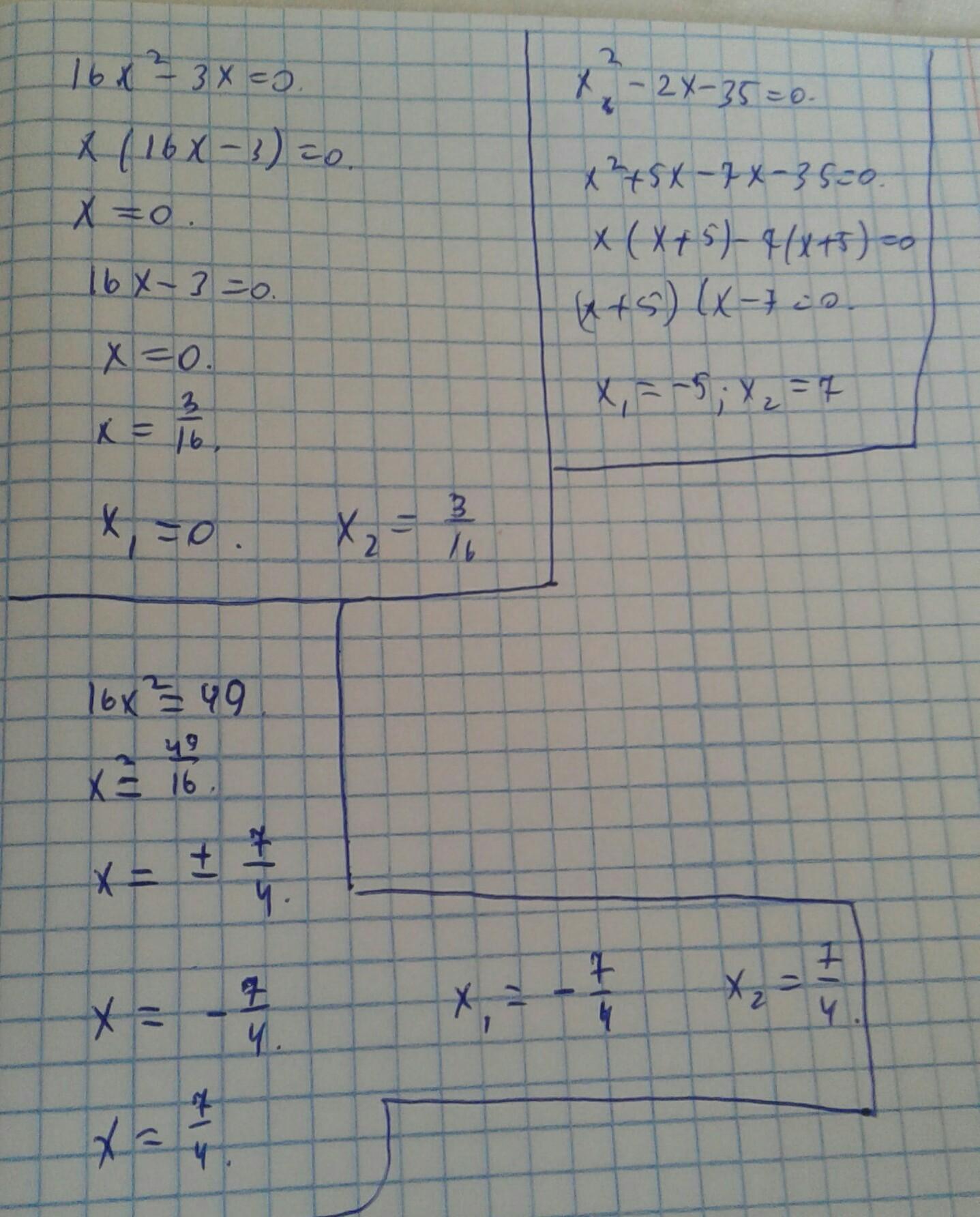 3) x² - 2x - 35 = 0