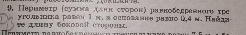 У равнобедренного треугольника боковые стороны равны, следовательно нужно от всего периметра отнять основание и разделить на две( 2 стороны)