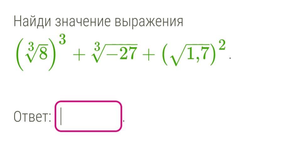 (^3v8)^3 + ^3v-27 +(v1,7)^2= 2^3 -3+1,7= 6,7