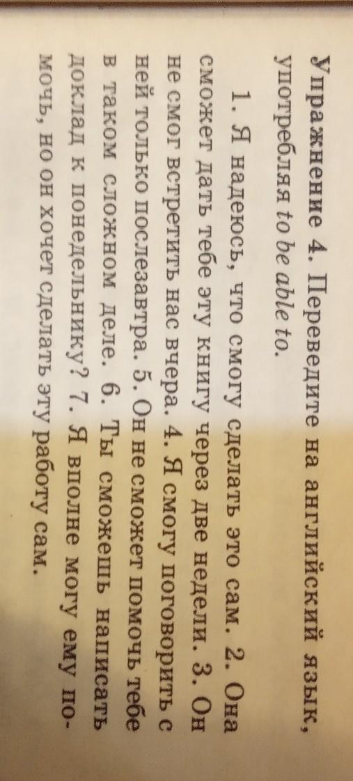 1. I hope I can do it myself. 2. She will be able to give you this book in two weeks. 3. He could not meet us yesterday. 4. I can only talk to her the day after tomorrow. 5. He will not be able to help you in such a difficult matter. b. Can you write a report by Monday? 7. I may be able to, but he wants to do this work himself. he should