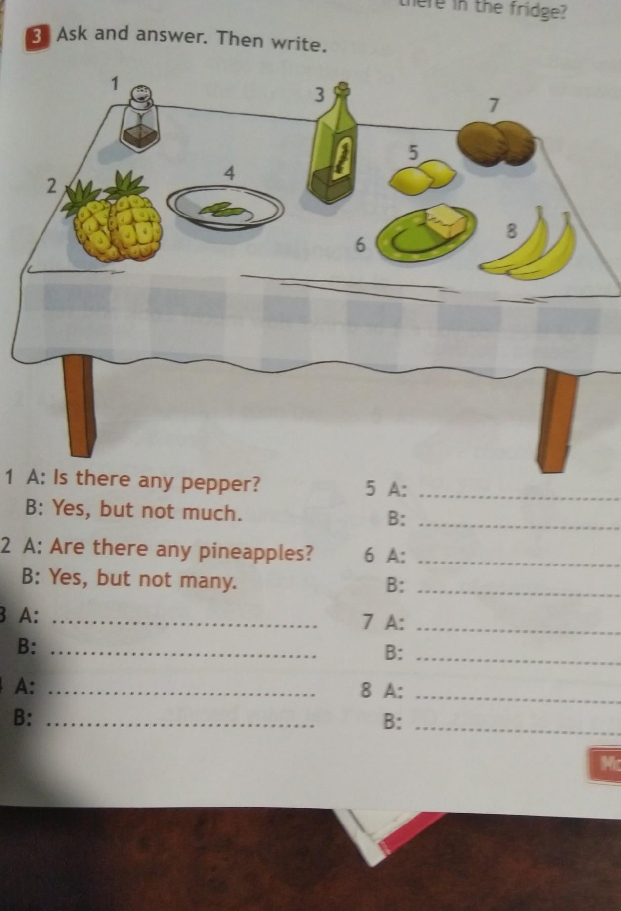 yes we have but it almost on the bottom 4do we have any peas left? yes there is two last on that plate 6 how much butter we have? we almost on one quarter 5do we have any lemons? yes we have two last 7is there any coconuts? yes we ha two coconuts 8how many bananas you have ? we have two bananas