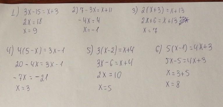 6) 5(x-1) = 4х + 3.