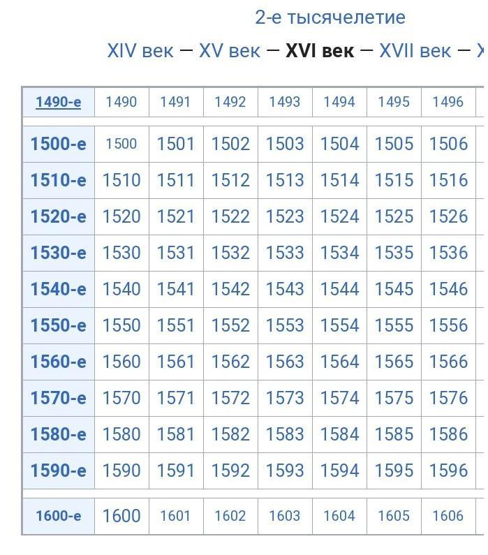 там все даты т.е то что происходило 16 веке