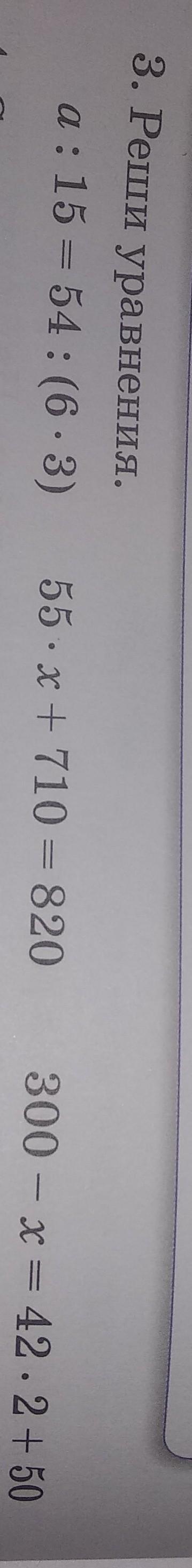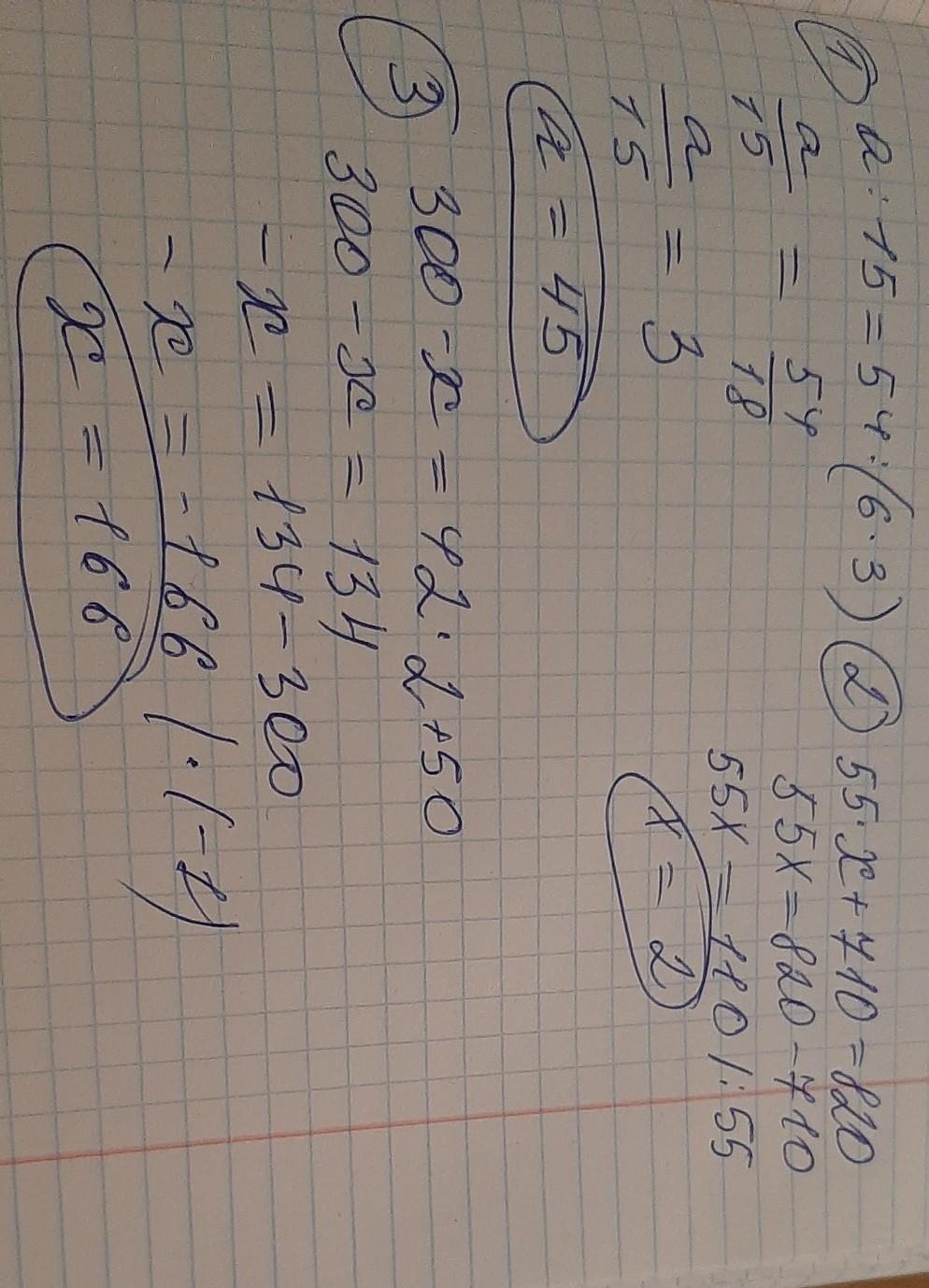 a:15=54:(6•3) , 55•x+710=820 , 300-x=42•2+50.