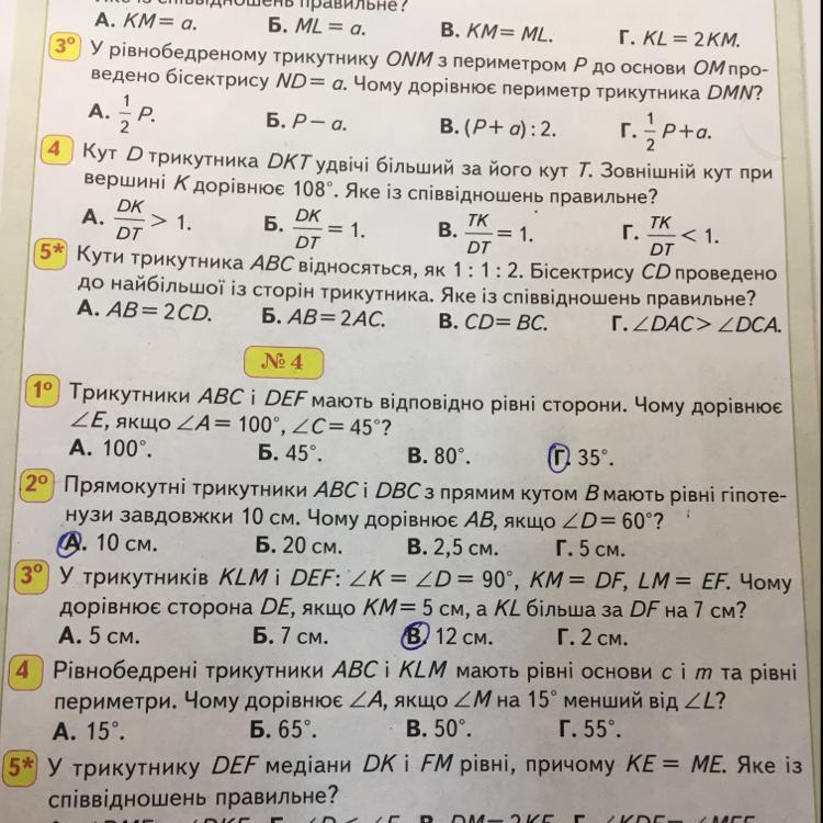 4. Рівнобедрені трикутники ABC i KLM мають рівні основи с і m