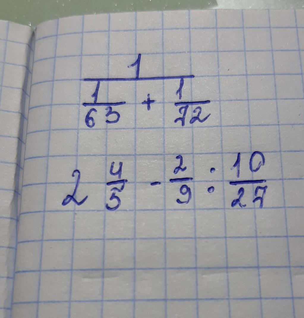 2 4/5 - 2/9 : 10/27= 14/5 - 2/9 * 27/10 = 11/5