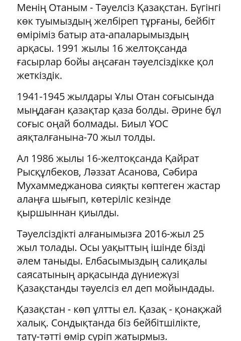 Менің тәуелсіз елім Қазақстаным!