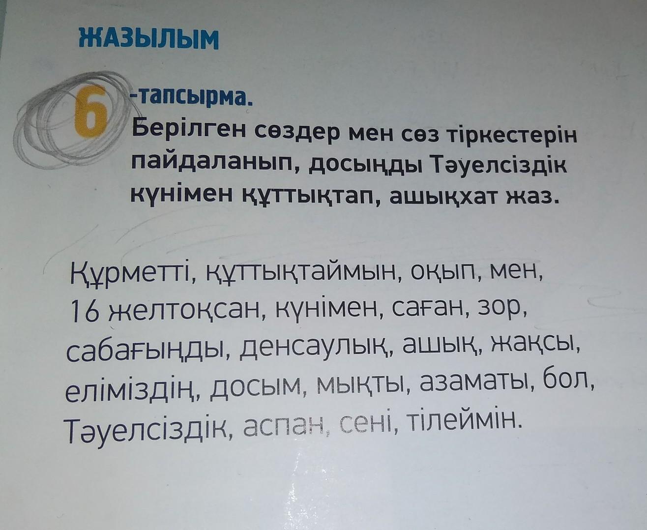 Ответ:Құрметті досым ! Сені 16 желтоқсан тәуелсіздік күнімен құттықтаймын. Саған зор денсаулық тілеймін. Аспаның ашық болсын. Сабағыңды жақсы оқы. Үнемі бес ал. Еліміздің мықты азаматы бол. Жауабыңды күтемін. Тағы да құттықтаймын. Сау бол!
