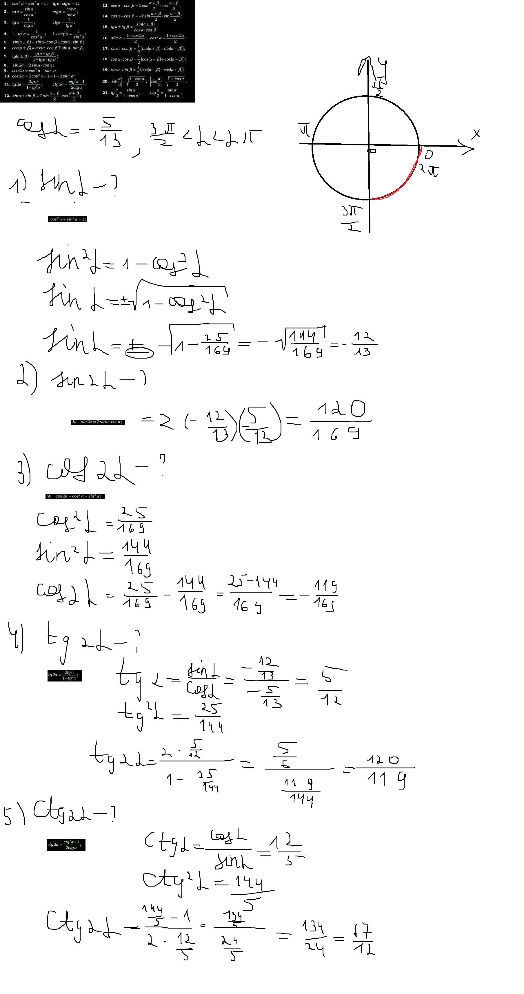 5) ctg 2a